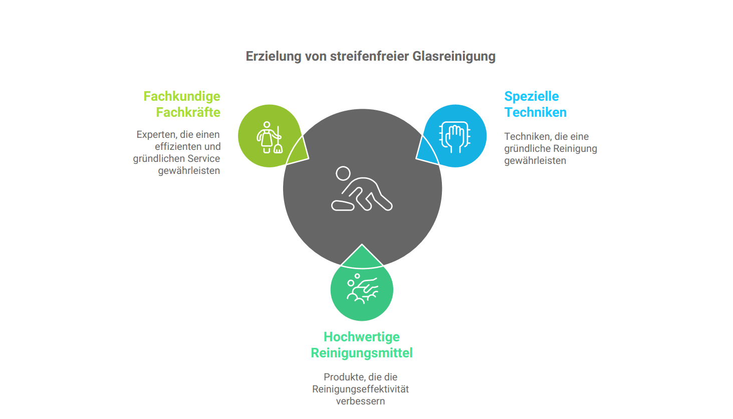 Fachkräfte verwenden spezielle Techniken und hochwertige Reinigungsmittel, um Fenster